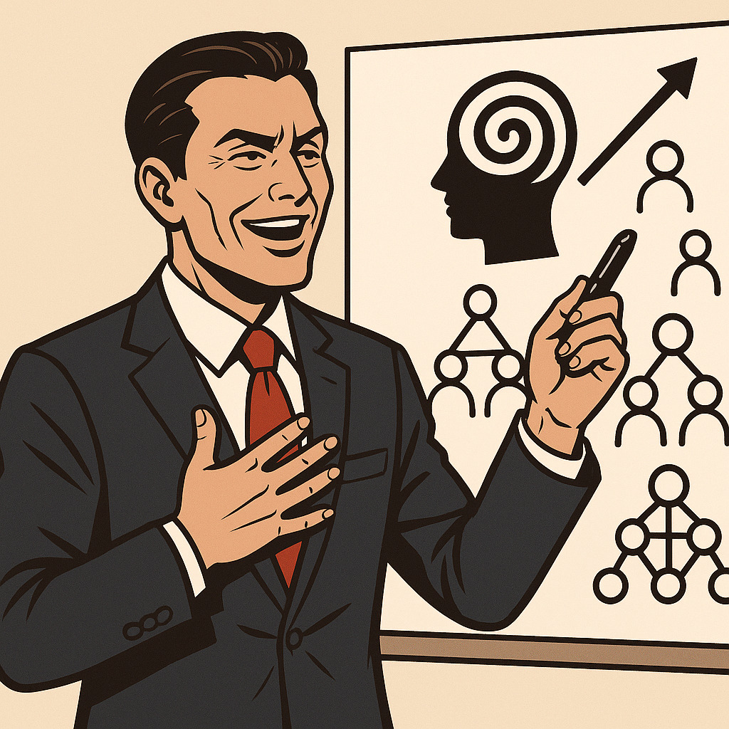 彼らはセミナーやミーティングで、「成功するためには常にポジティブであれ」「笑顔で人を惹きつけろ」「自分が商品だと思え」と徹底的に教え込まれていることが多いんですよ。だから、無理にでも口角を上げて、楽しそうに、幸せそうに振る舞おうとします。これは心理学的には「感情労働」に近い状態で、自分の本当の感情を押し殺して、役割としての表情を作り続けているわけです。