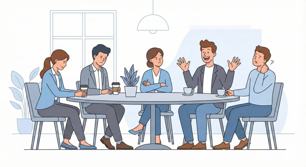 「今のままで本当にいいの?」という問いかけは、あなたの将来への不安を煽り、現状を否定させることで、救世主としてのビジネスモデルを提示するための典型的なトークスクリプト(台本)です。普通に近況報告をして、笑い合いたいだけなのに、いつの間にか自己啓発セミナーのような説教臭い展開になり、こちらが劣っているかのような扱いを受ける…。「あるある」すぎて首がもげるほど頷いている方もいるのではないでしょうか。
