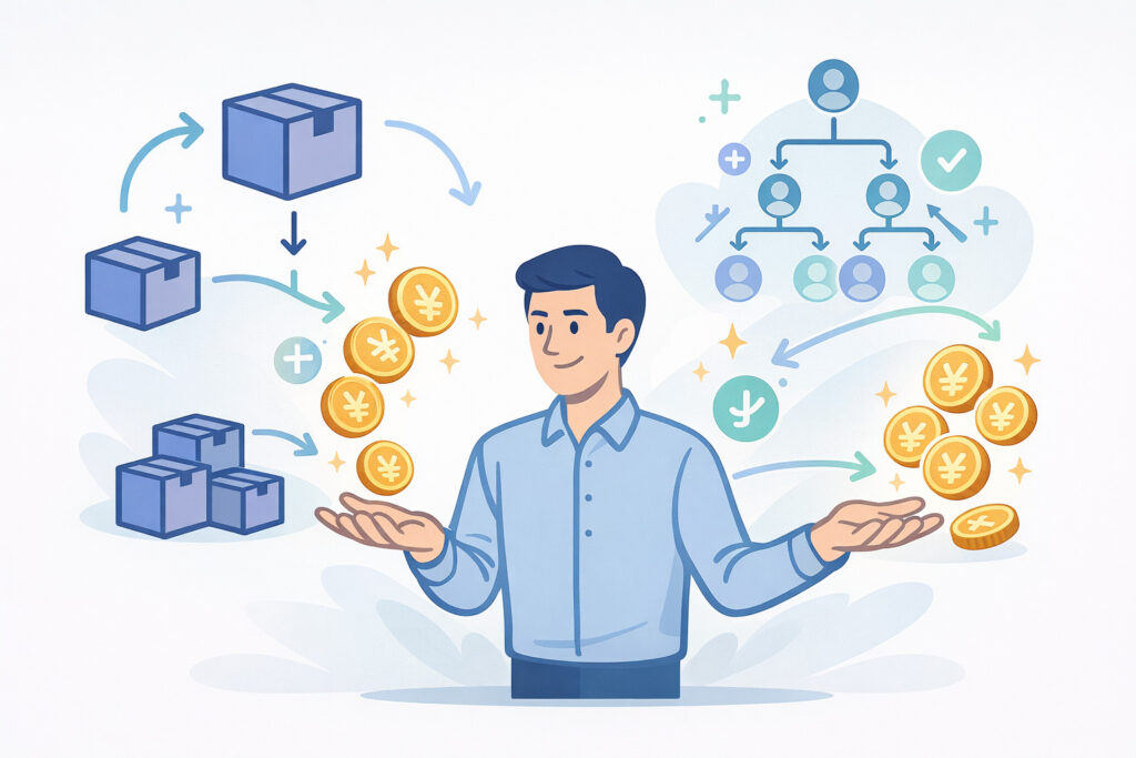 「このサプリ、すごく調子がいいから使ってみてよ!」と友人に紹介し、その友人が購入すると、メーカーからすれば「広告宣伝費」と「中間マージン」が浮きますよね。その浮いたコストの一部を、紹介してくれた会員に「報酬」として還元する。これがMLMの基本的なお金の出どころなんです。