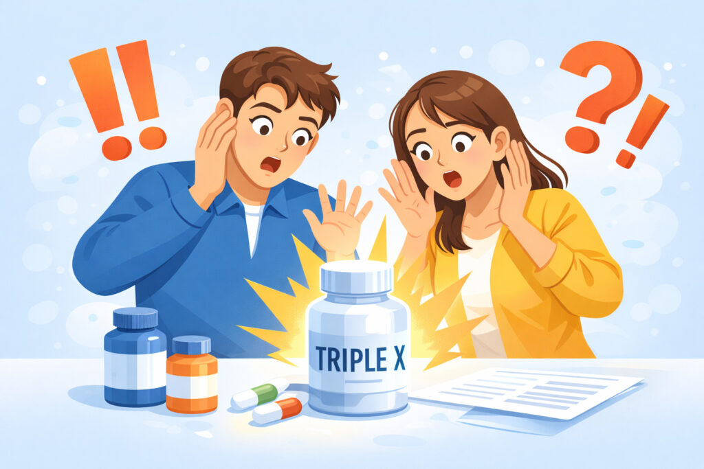 ここがこの記事の結論につながるポイントです。トリプルXに限らず、サプリは製造上の都合で賦形剤(形を作るための成分)など、いわゆる添加物が入ることがあります。これは「悪いものが入ってる!」という話ではなくて、錠剤やカプセルを安定して作るための“技術的な事情”がある、という理解がまず大事です。